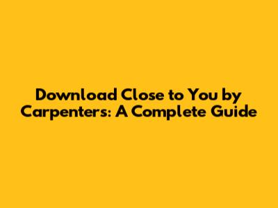 Download 'Close To You' By Carpenters: A Complete Guide