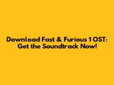 Download Fast & Furious 1 OST: Get The Soundtrack Now!