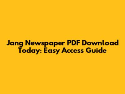 Download Jang Newspaper PDF Today: Easy Access Guide