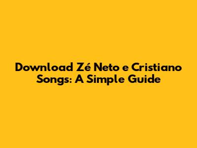 Download Zé Neto E Cristiano Songs: A Simple Guide