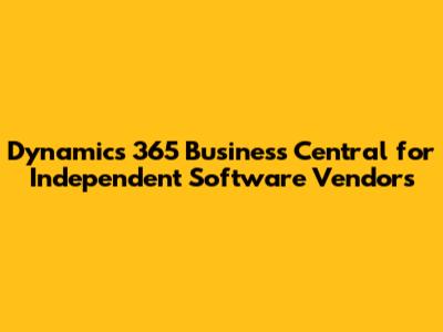 Dynamics 365 Business Central For Independent Software Vendors
