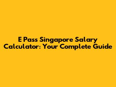 E Pass Singapore Salary Calculator: Your Guide