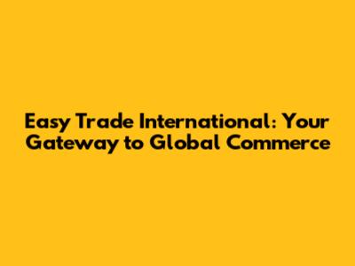 Easy Trade International: Your Guide To Global Commerce