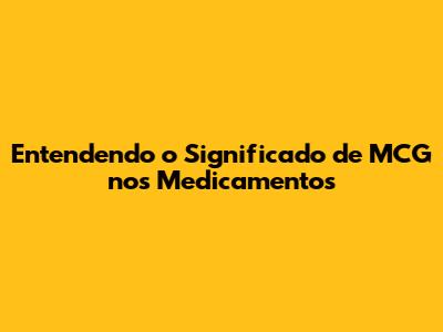 Entendendo O Significado De MCG Nos Medicamentos