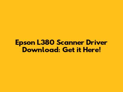 Epson L380 Scanner Driver Download: Get It Here!