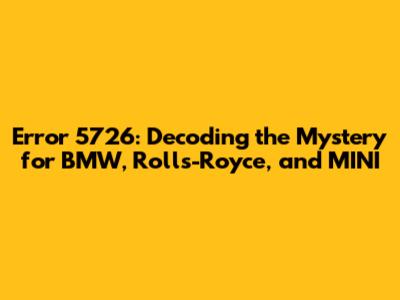 Hey car enthusiasts! Ever seen the dreaded Error 5726 pop up on your BMW, Rolls-Royce, or MINI? Don't sweat it – you're not alone. This error code can be a real head-scratcher, but understanding it is the first step toward getting your luxury ride back on the road. We're going to dive deep into Error 5726, exploring what it means, the potential causes, and how you can troubleshoot and fix it. Buckle up, and let's get started!