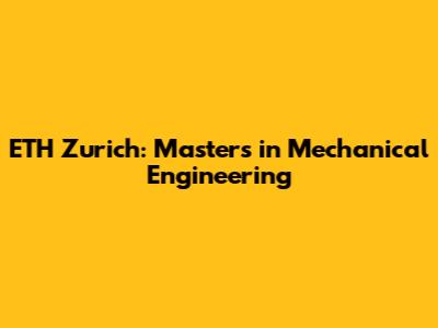 ETH Zurich: Master's In Mechanical Engineering
