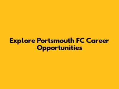 Explore Portsmouth FC Career Opportunities