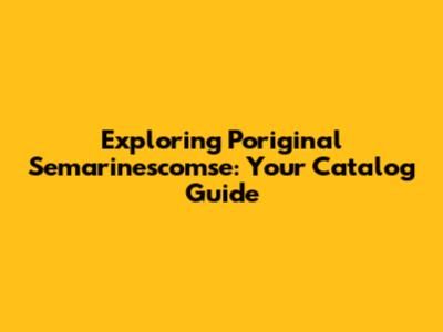 Exploring Poriginal Semarinescomse: Your Catalog Guide