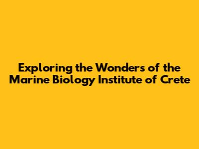 Exploring The Wonders Of The Marine Biology Institute Of Crete