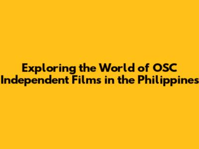 Exploring The World Of OSC Independent Films In The Philippines