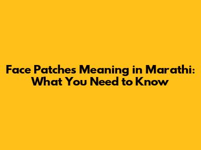 Face Patches Meaning In Marathi: What You Need To Know