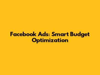 Facebook Ads: Smart Budget Optimization