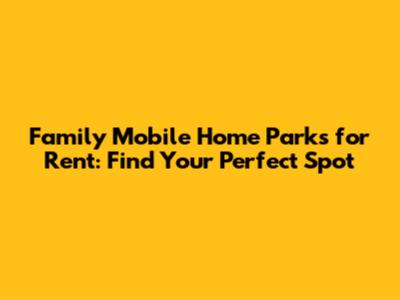 Family Mobile Home Parks For Rent: Find Your Perfect Spot