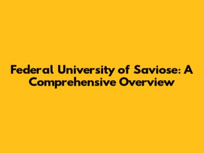 Federal University Of Saviose: A Comprehensive Overview