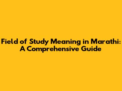 Field Of Study Meaning In Marathi: A Comprehensive Guide