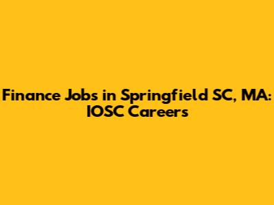 Finance Jobs In Springfield SC, MA: IOSC Careers
