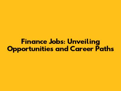 Finance Jobs: Unveiling Opportunities And Career Paths