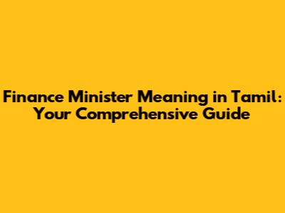 Finance Minister Meaning In Tamil: Your Complete Guide
