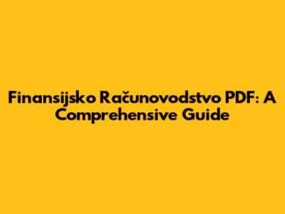 Finansijsko Računovodstvo PDF: A Comprehensive Guide