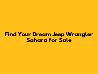 Find Your Dream Jeep Wrangler Sahara For Sale