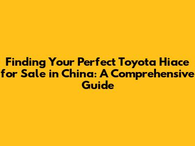Find Your Toyota Hiace In China: A Buyer's Guide