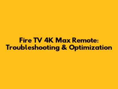 Fire TV 4K Max Remote: Troubleshooting & Optimization