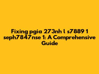 Fixing Pgia 273nh L S7889 1 Seph7847nse 1: A Comprehensive Guide