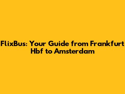 Hey guys! Planning a trip from Frankfurt Hbf to Amsterdam? Taking the FlixBus is a super popular and budget-friendly way to travel. Let's dive into everything you need to know to make your trip smooth and enjoyable. We'll cover booking, what to expect on board, and some tips to make the most of your journey. Whether you're a seasoned traveler or a newbie, this guide has got you covered. So, sit back, relax, and let's get started!