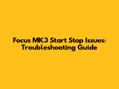 Focus MK3 Start Stop Issues: Troubleshooting Guide