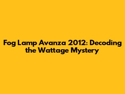Fog Lamp Avanza 2012: Wattage And Considerations