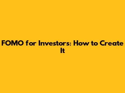 FOMO For Investors: How To Create It