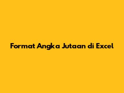 Format Angka Jutaan Di Excel