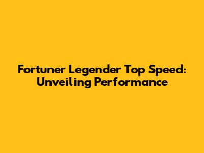 Fortuner Legender Top Speed: Unveiling Performance