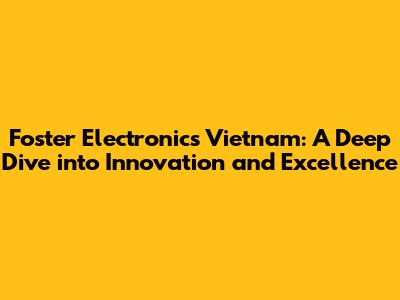 Foster Electronics Vietnam: A Deep Dive