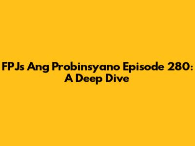 Hey guys! Let's dive deep into the thrilling world of FPJ's Ang Probinsyano, specifically focusing on episode 280. If you're a loyal viewer like me, you know this show is a rollercoaster of emotions, action-packed sequences, and compelling storylines. This isn't just a recap; it's a comprehensive analysis, a look at the characters' development, and the major plot points that make this episode stand out. We'll break down the key moments, the impactful dialogues, and the overall impact of episode 280 on the larger narrative of the series. So, grab your snacks, settle in, and let's dissect the action!