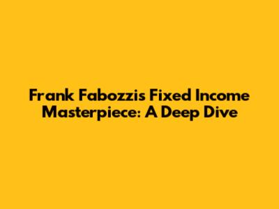 Frank Fabozzi's Fixed Income Masterpiece: A Deep Dive