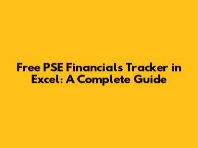 Free PSE Financials Tracker In Excel: A Complete Guide