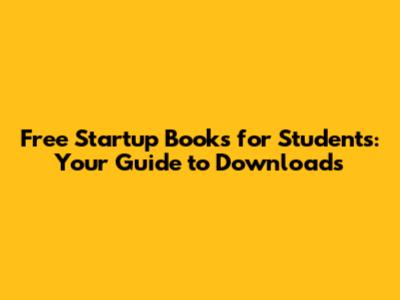 Free Startup Books For Students: PDF Download