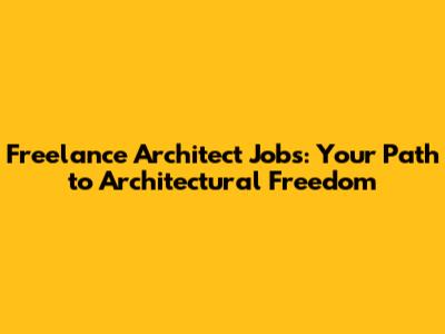 Freelance Architect Jobs: Your Path To Architectural Freedom
