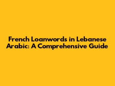 French Loanwords In Lebanese Arabic: A Comprehensive Guide
