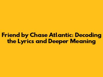 Hey everyone! Today, we're diving deep into the Friend song by Chase Atlantic. This song has a unique vibe, and if you're like me, you're probably wondering what it's all about. So, let's break down the lyrics, the meaning, and all the cool stuff hidden within this awesome track. Get ready to explore the world of Chase Atlantic's Friend and discover what makes it so captivating!
