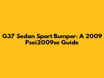 G37 Sedan Sport Bumper: A 2009 Psei2009se Guide