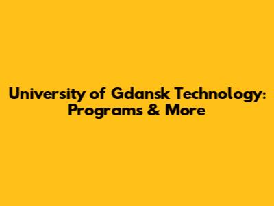 Gdansk University Of Technology: Programs & More