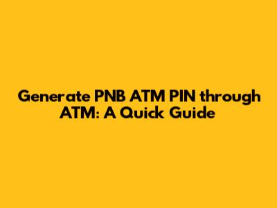Generate PNB ATM PIN Via ATM: A Quick Guide