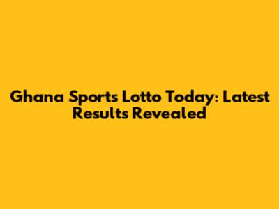 Ghana Sports Lotto Today: Latest Results Revealed