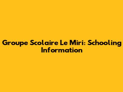 Groupe Scolaire Le Miri: Schooling Information