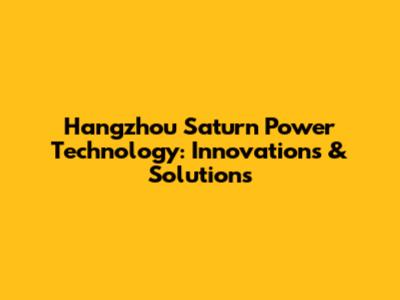 Hangzhou Saturn Power Technology: Innovations & Solutions
