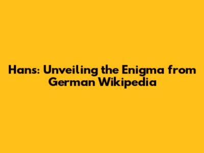 Hans: Unveiling The Enigma From German Wikipedia