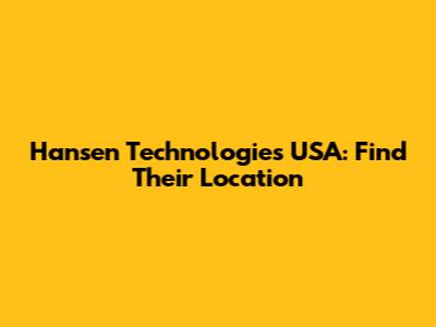 Why Knowing Hansen Technologies USA Address Matters
